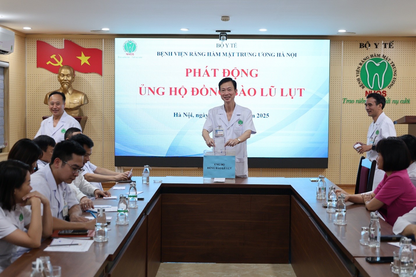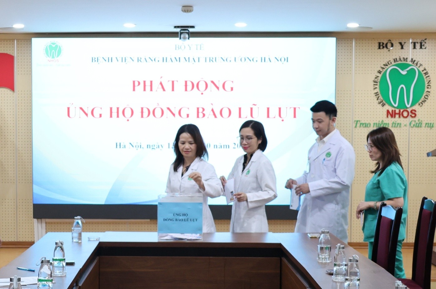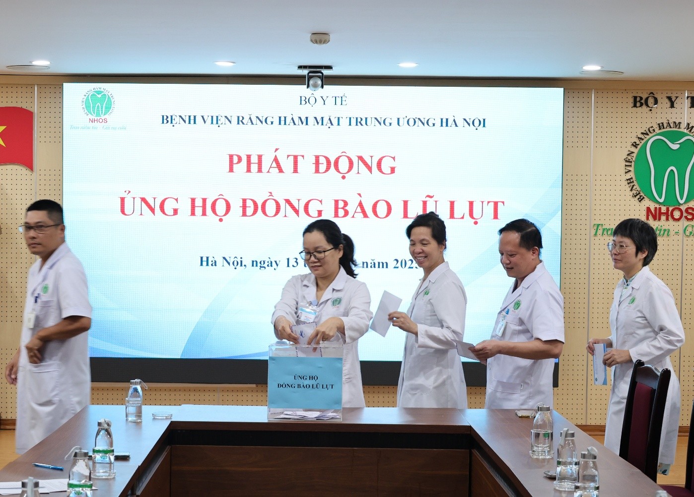 Chiều 13/10/2025, Ban Giám đốc và Công đoàn Bệnh viện Răng Hàm Mặt Trung ương Hà Nội (Bệnh viện) đã tổ chức Lễ phát động quyên góp ủng hộ đồng bào đang chịu ảnh hưởng nặng nề do hai cơn bão liên tiếp số 10 và số 11 gây ra. Chương trình đã nhận được sự hưởng ứng tích cực từ toàn thể viên chức, người lao động (VC,NLĐ) trong bệnh viện.
