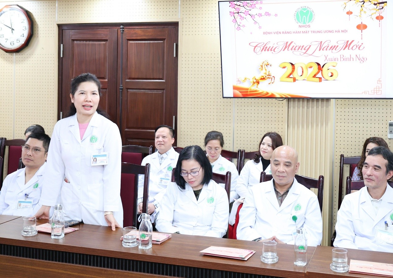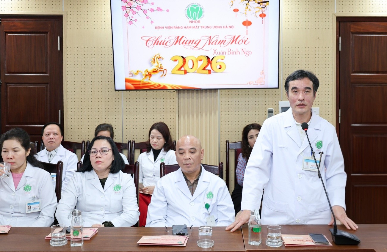 Trong không khí phấn khởi của những ngày đầu xuân mới, sáng ngày 23/2/2026, Bệnh viện Răng Hàm Mặt Trung ương Hà Nội (Bệnh viện) đã tổ chức buổi gặp mặt đầu năm 2026 trong bầu không khí trang trọng, ấm áp và đầy tinh thần đoàn kết. Đây là hoạt động thường niên có ý nghĩa quan trọng, nhằm nhìn lại những kết quả nổi bật đã đạt được đồng thời đề ra phương hướng hoạt động cho năm mới với quyết tâm đổi mới và phát triển bền vững.