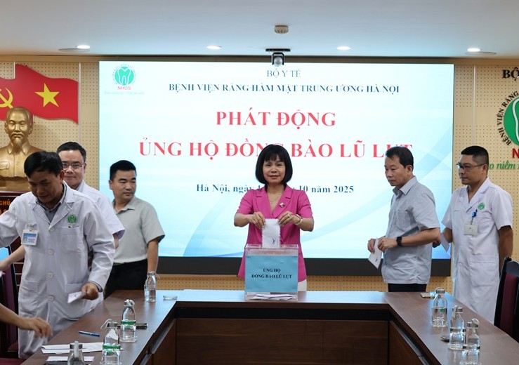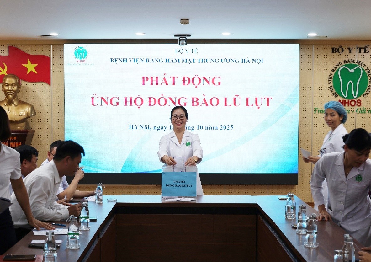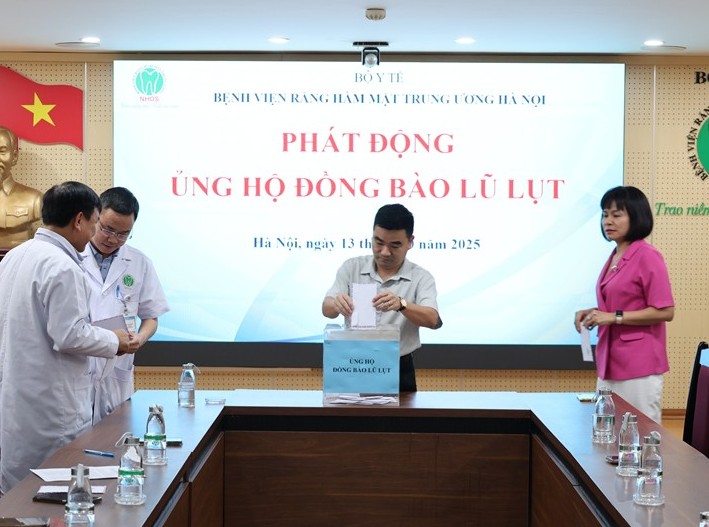 Chiều 13/10/2025, Ban Giám đốc và Công đoàn Bệnh viện Răng Hàm Mặt Trung ương Hà Nội (Bệnh viện) đã tổ chức Lễ phát động quyên góp ủng hộ đồng bào đang chịu ảnh hưởng nặng nề do hai cơn bão liên tiếp số 10 và số 11 gây ra. Chương trình đã nhận được sự hưởng ứng tích cực từ toàn thể viên chức, người lao động (VC,NLĐ) trong bệnh viện.