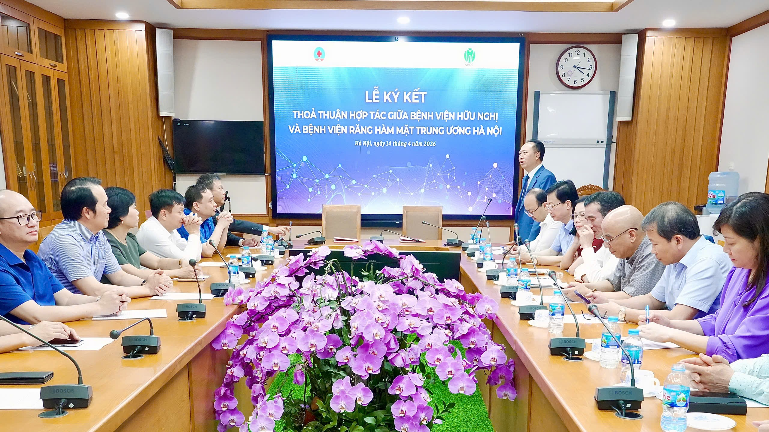 Ngày 14/4/2026, tại Bệnh viện Hữu Nghị đã diễn ra Lễ ký kết thỏa thuận hợp tác chuyên môn giữa Bệnh viện Răng Hàm Mặt Trung ương Hà Nội (Bệnh viện) và Bệnh viện Hữu Nghị, đánh dấu bước phát triển trong việc tăng cường hỗ trợ chuyên môn, nâng cao chất lượng chăm sóc sức khỏe răng miệng, đặc biệt cho người bệnh cao tuổi.