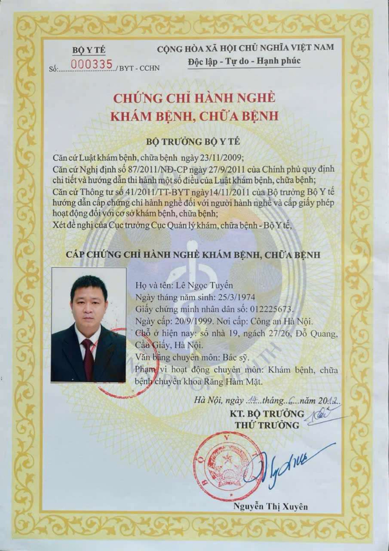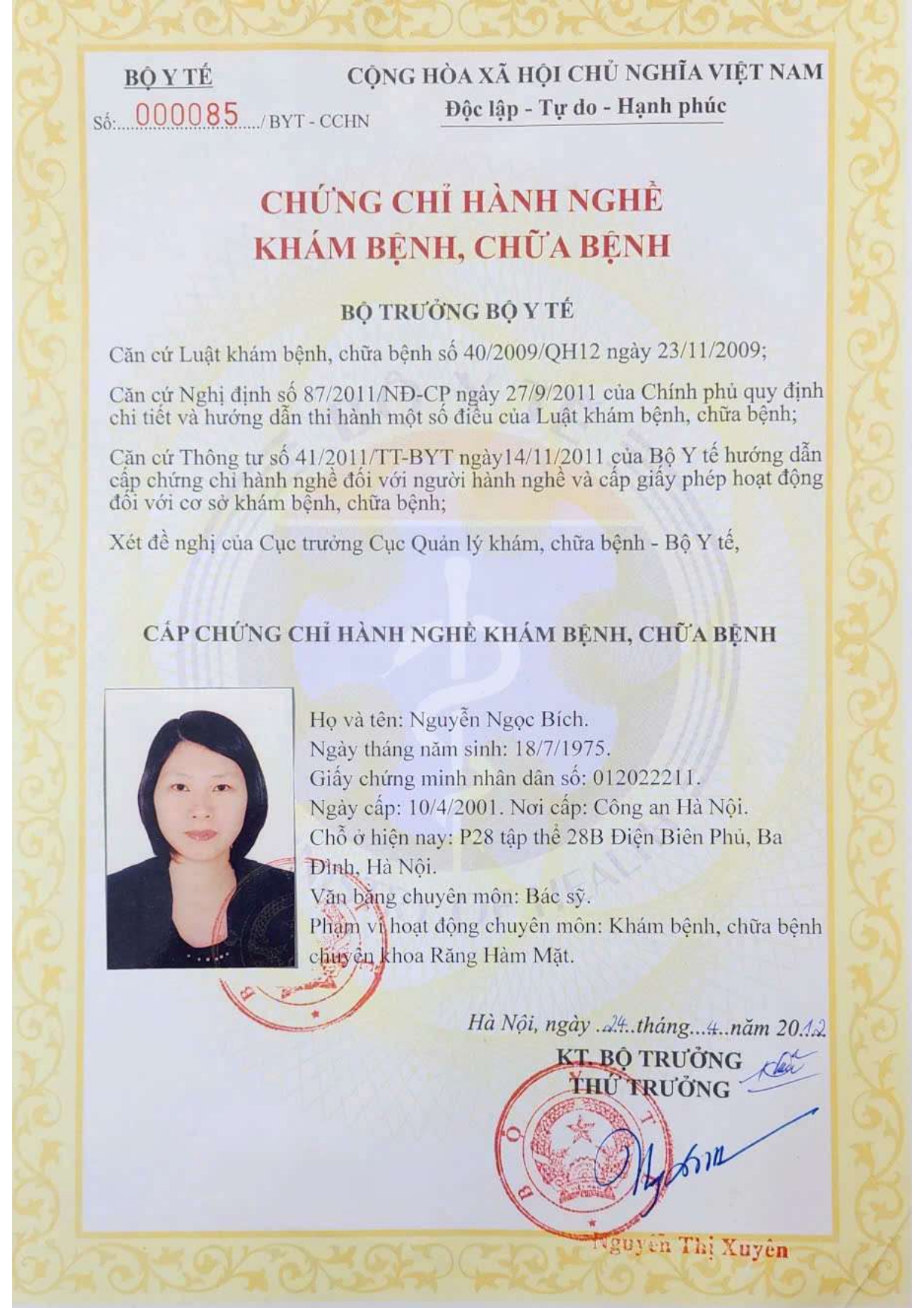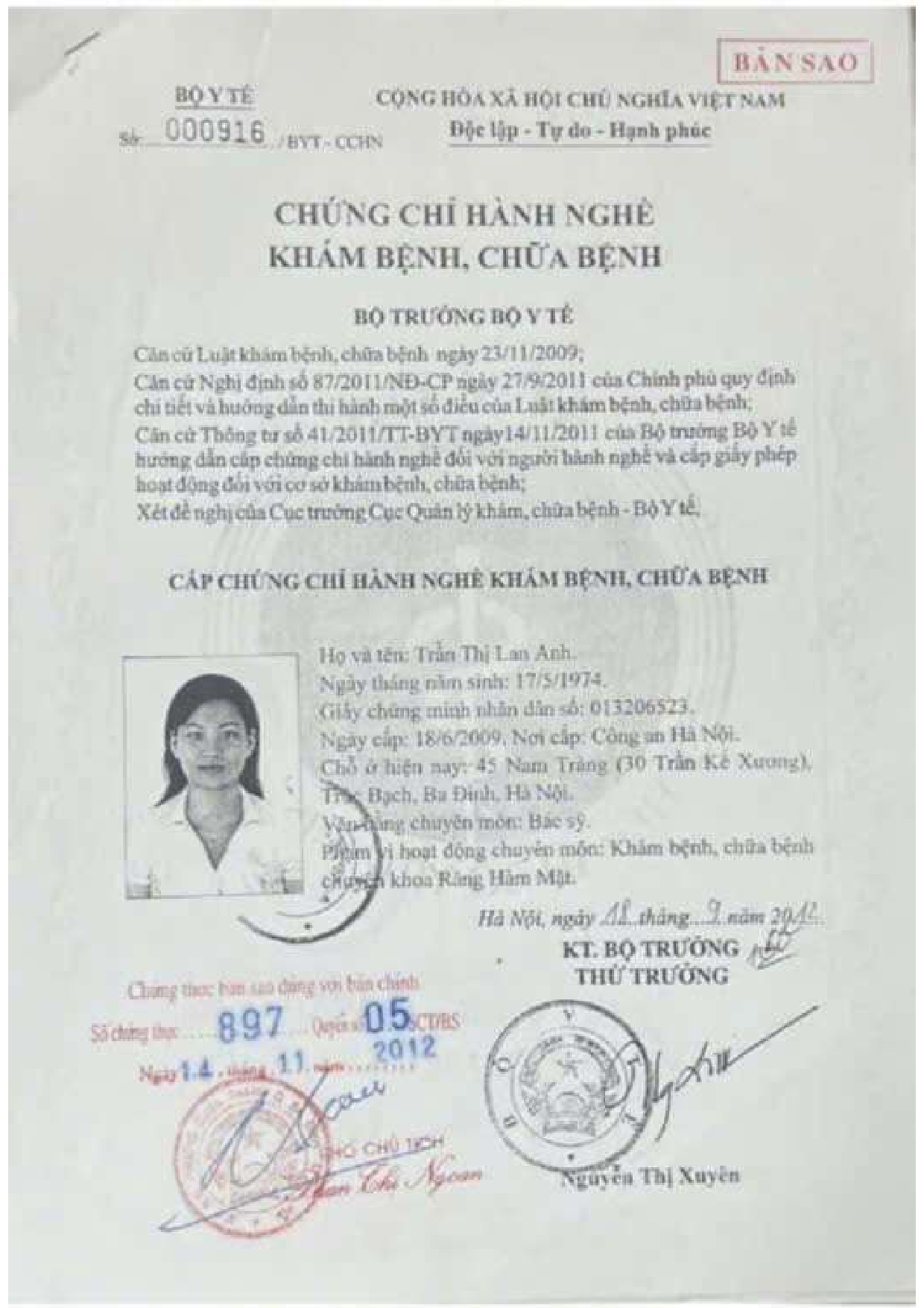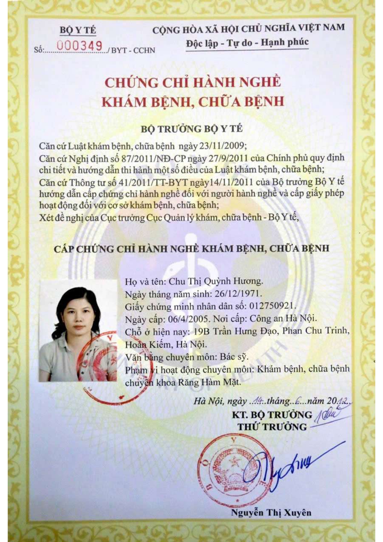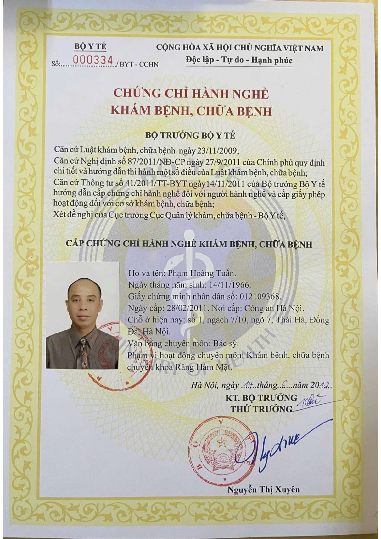 Nơi ở hiện tại: 40B Tràng Thi, Hoàn Kiếm, Hà Nội