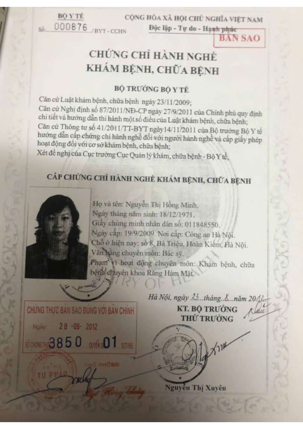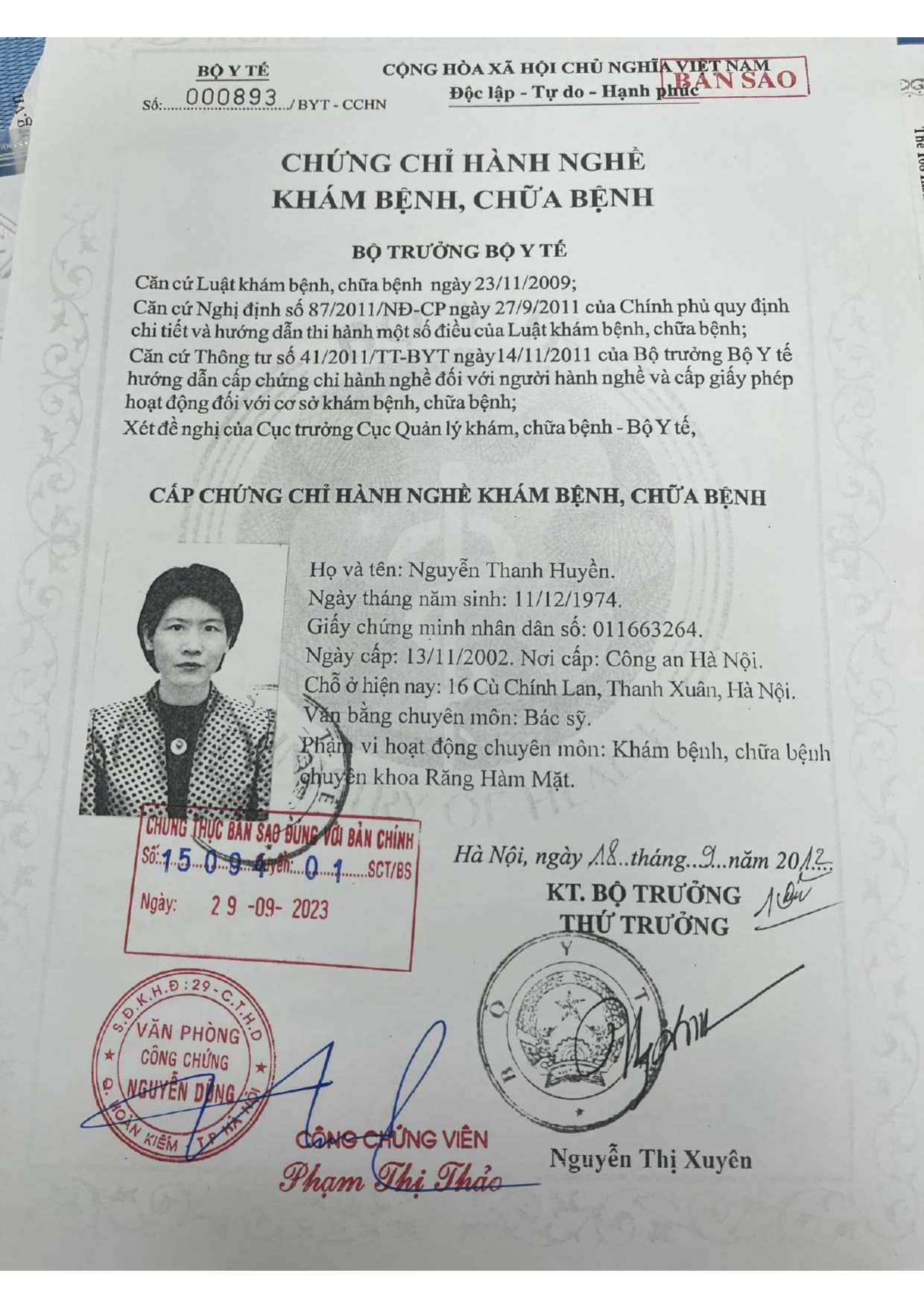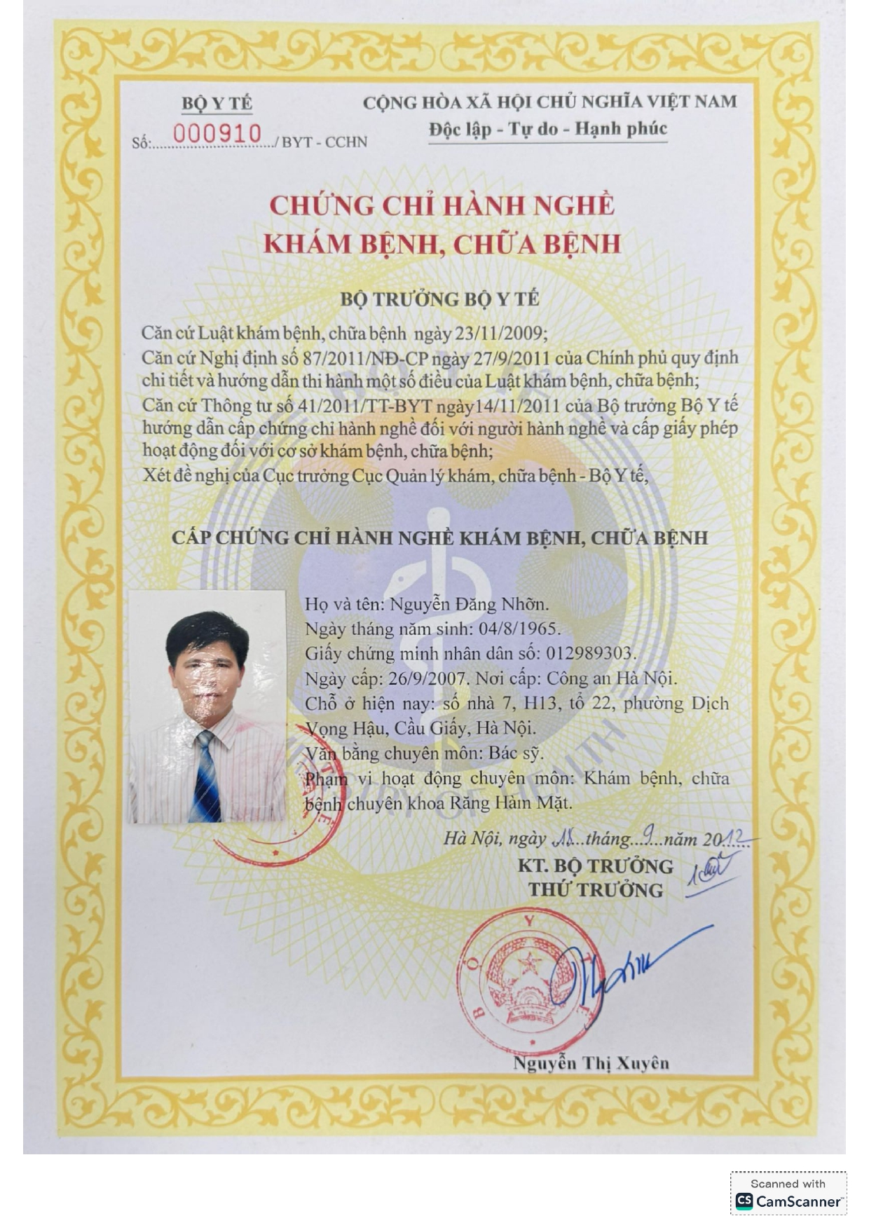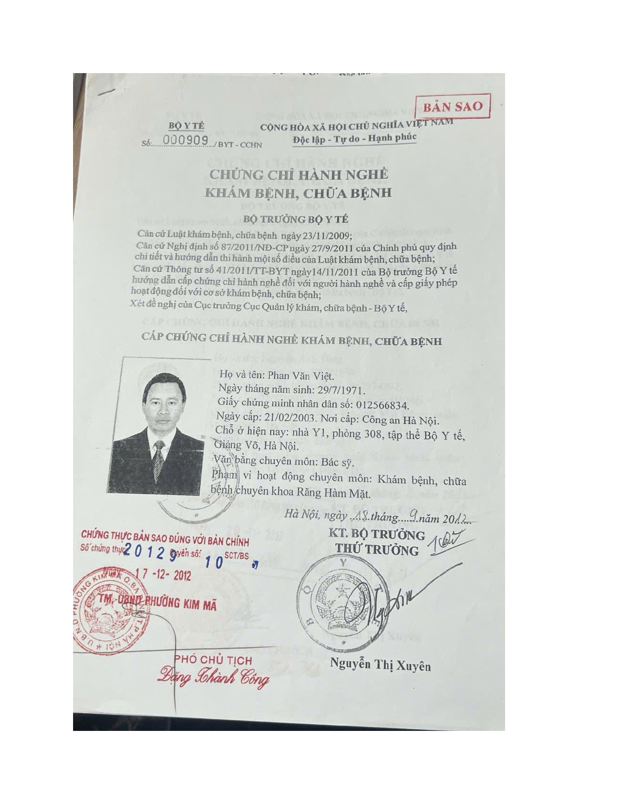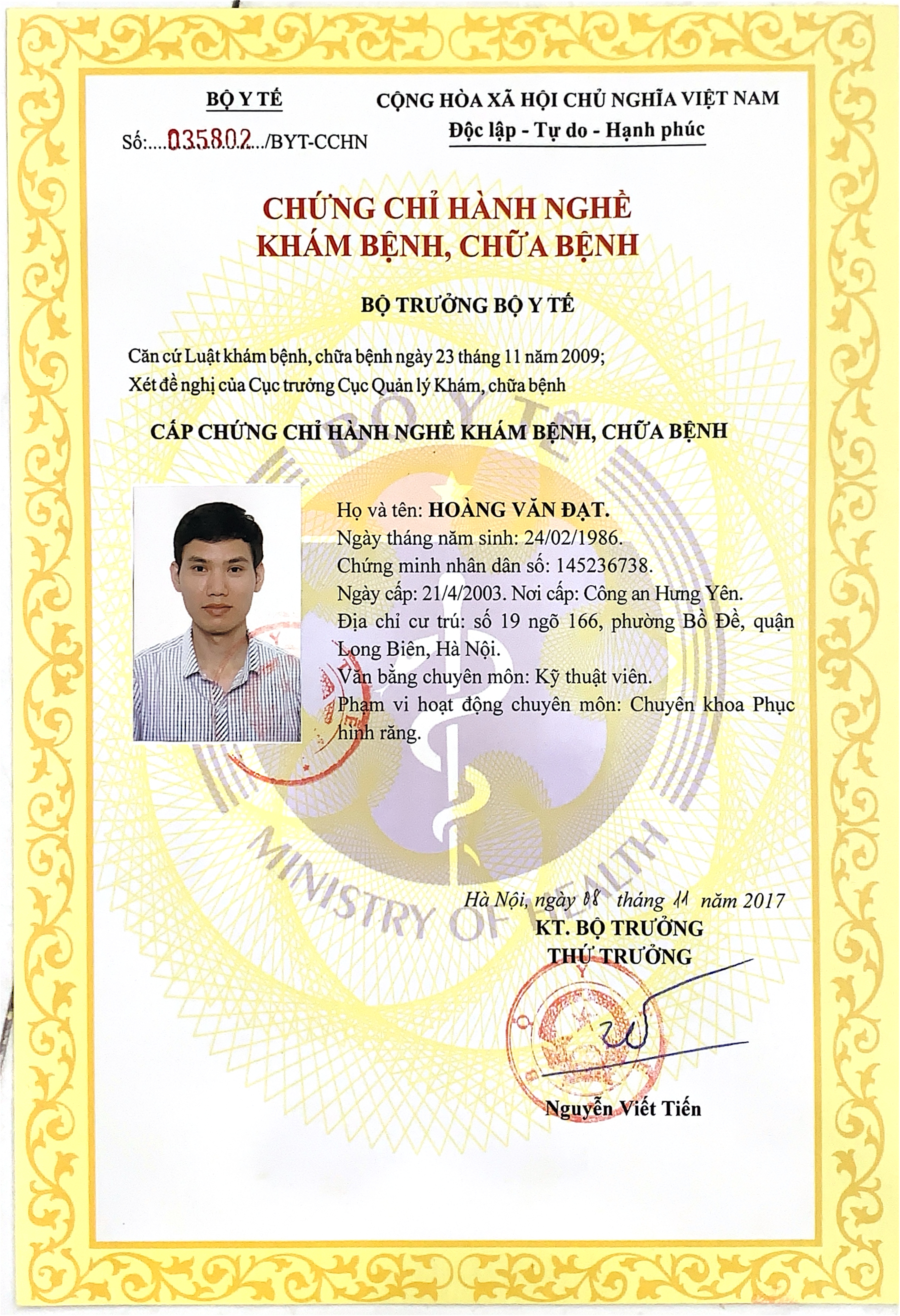 Nơi ở hiện tại: 40B Tràng Thi, Hoàn Kiếm, Hà Nội