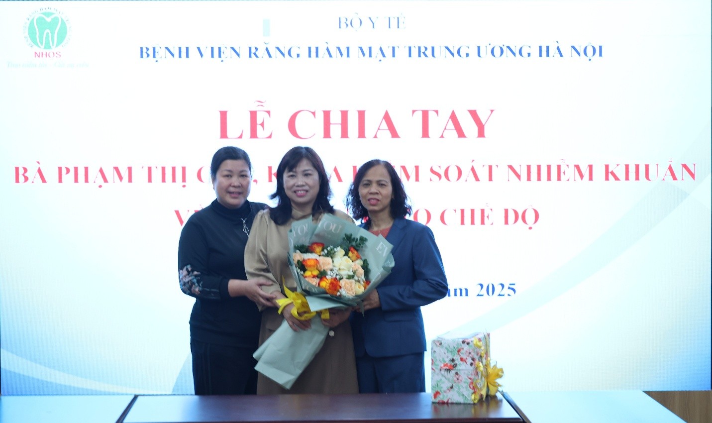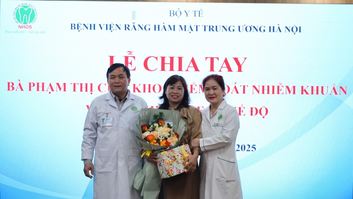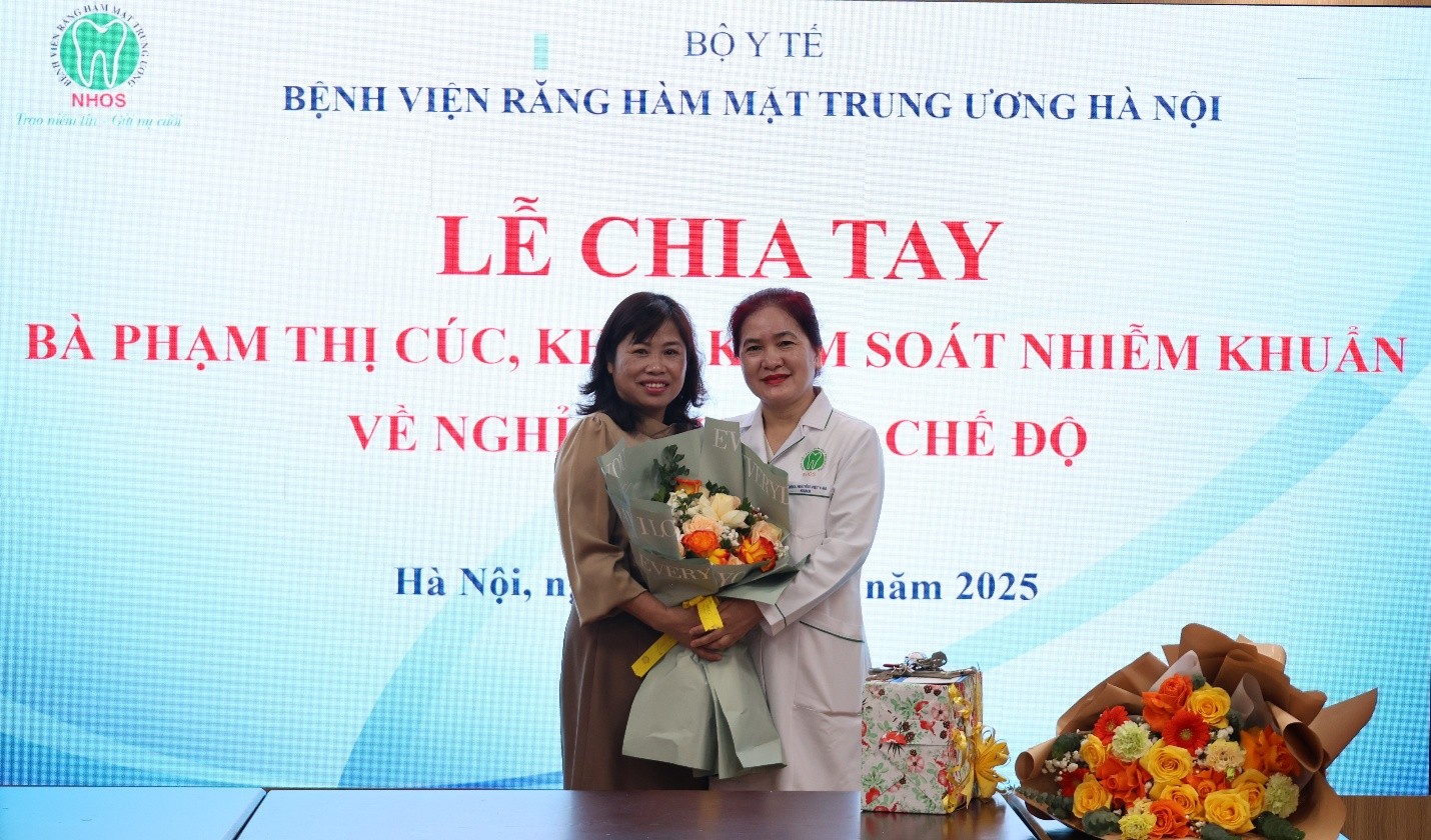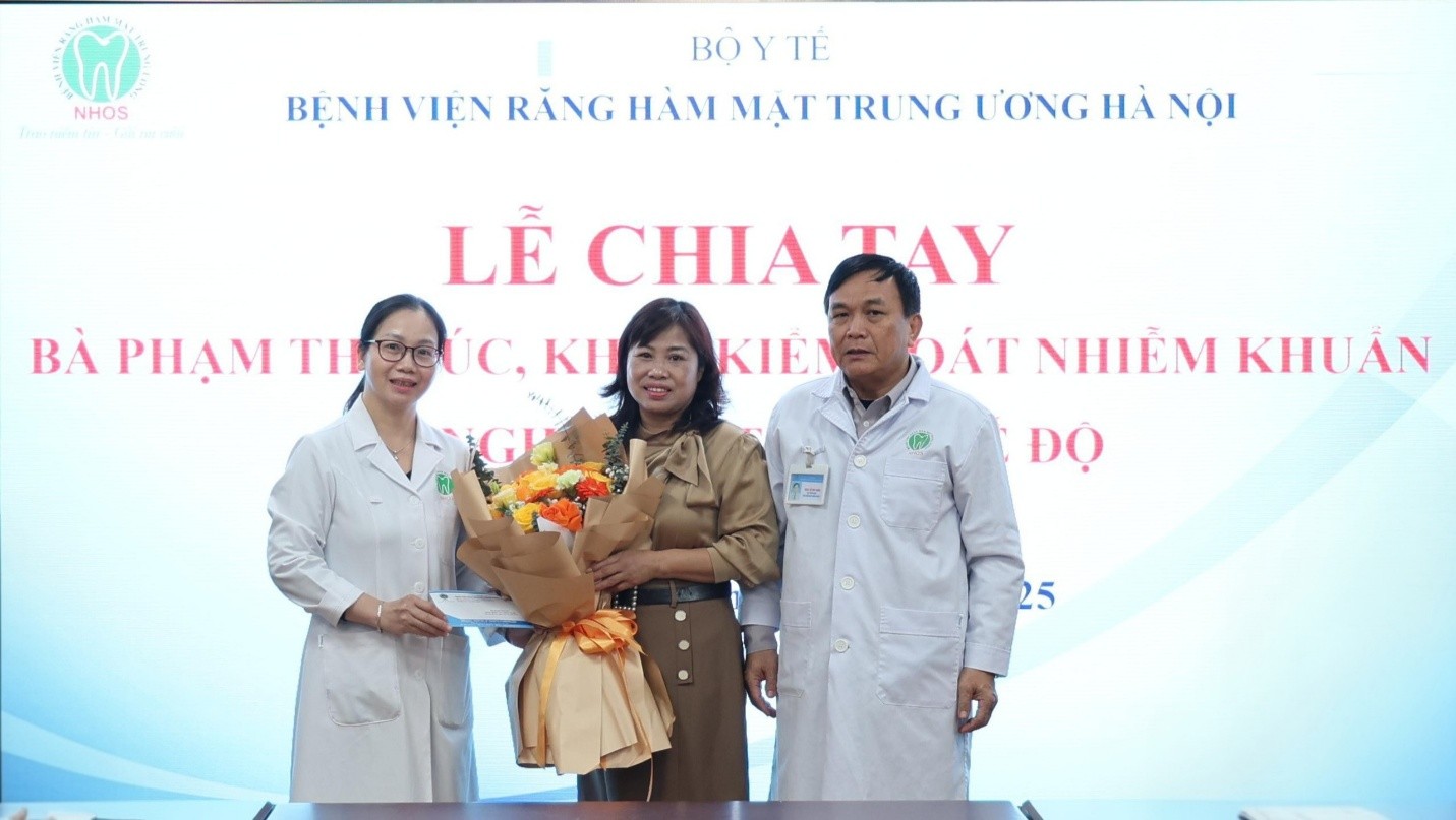 Sáng 30/12/2025, tại Hội trường B5.1, Khoa Kiểm soát nhiễm khuẩn, Bệnh viện Răng Hàm Mặt Trung ương Hà Nội đã tổ chức Lễ chia tay bà Phạm Thị Cúc về nghỉ hưu theo chế độ. Buổi lễ diễn ra trong không khí trang trọng, ấm áp, đong đầy tình cảm đồng nghiệp và sự trân trọng dành cho một viên chức đã gắn bó, cống hiến nhiều năm cho đơn vị.